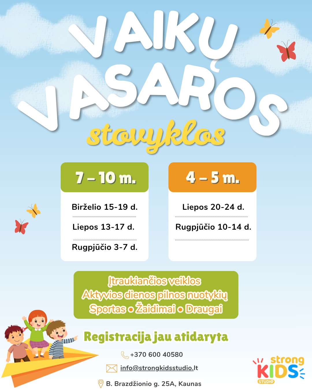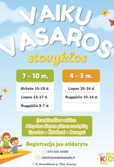 Registracija ir daugiau informacijos: +37060040580 arba info@strongkidsstudio.lt